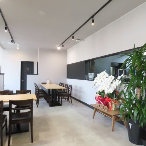 吹き抜けの開放感あふれる空間が広がる店内。スポットライトが優しく照らす落ち着いた雰囲気の中で、ゆっくりとお食事をお楽しみいただけます。モダンなデザインの建物は、日常を忘れて過ごせる特別なひと時を演出◎大切な方とのデートや、心安らぐランチタイムなど、幅広いシーンに寄り添う心地よい空間です。